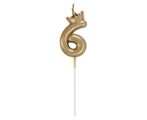 Födelsedagsljus i guld med siffran 6, 6 cm högt.