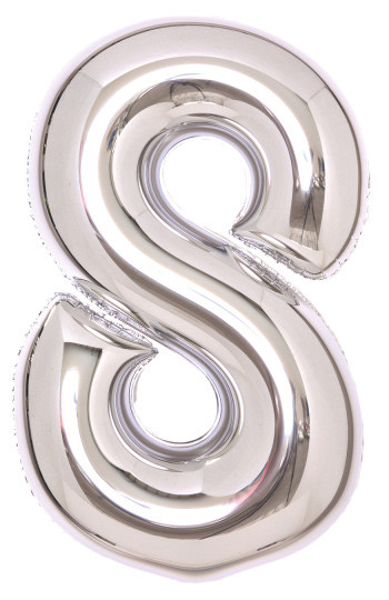 Number Silver, silverfolieballong i form av siffran 8, storlek 61,5×93,5 cm.